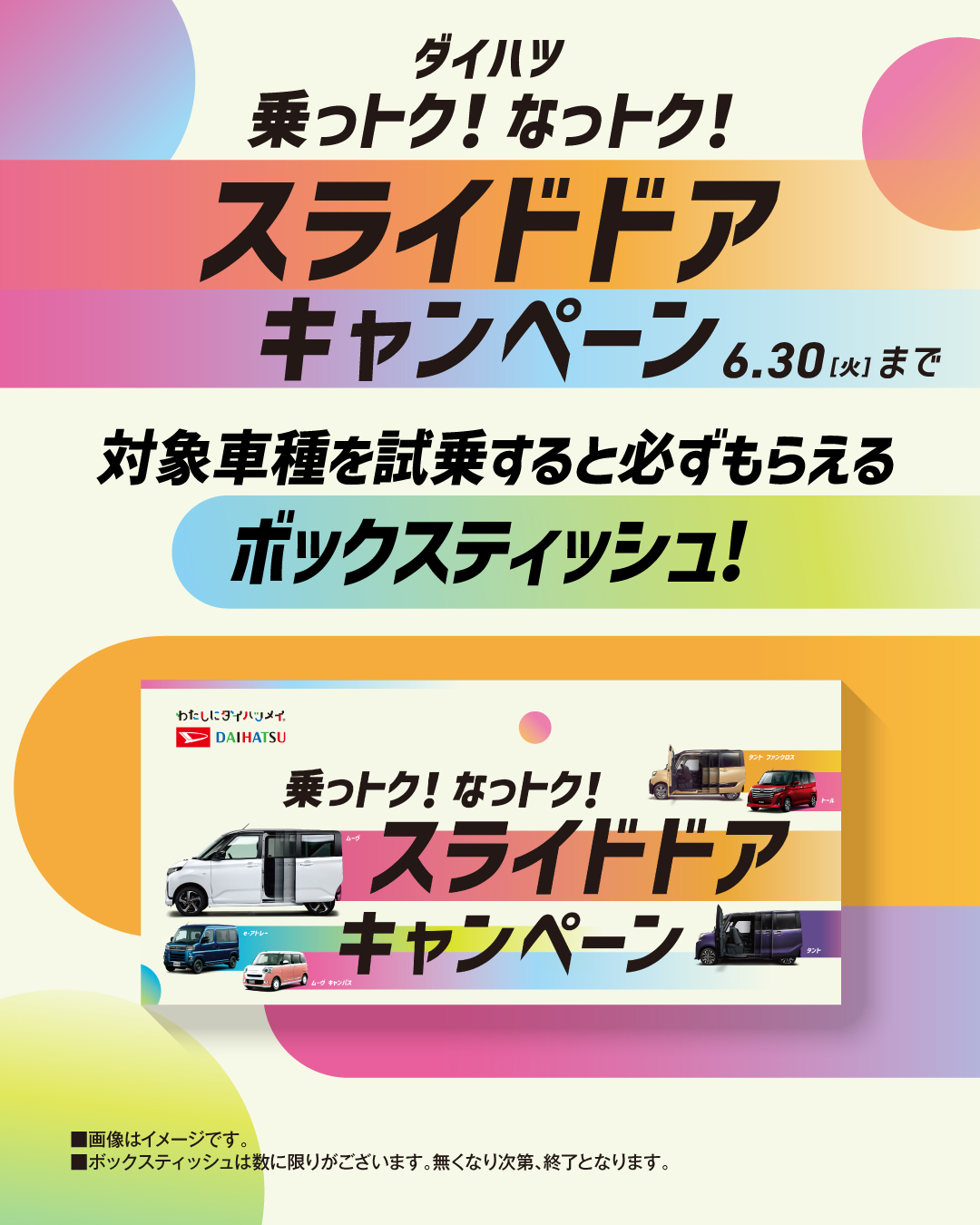 《乗っトク!なっトク!スライドドアキャンペーン》も開催しております(^^♪