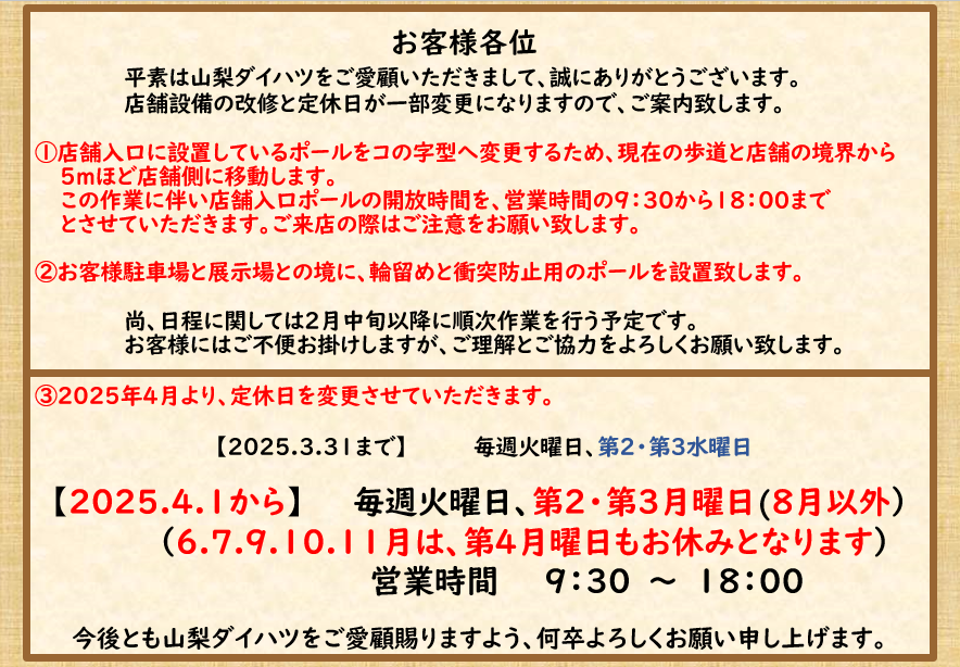 ③2025年4月より、定休日の変更がございます。