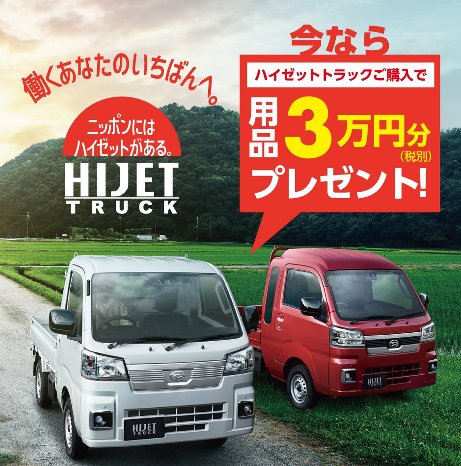ハイゼットトラックのご成約をいただくと、用品3万円プレゼント!