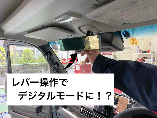 インナーミラーがレバー操作で鏡面モードからデジタルモードに