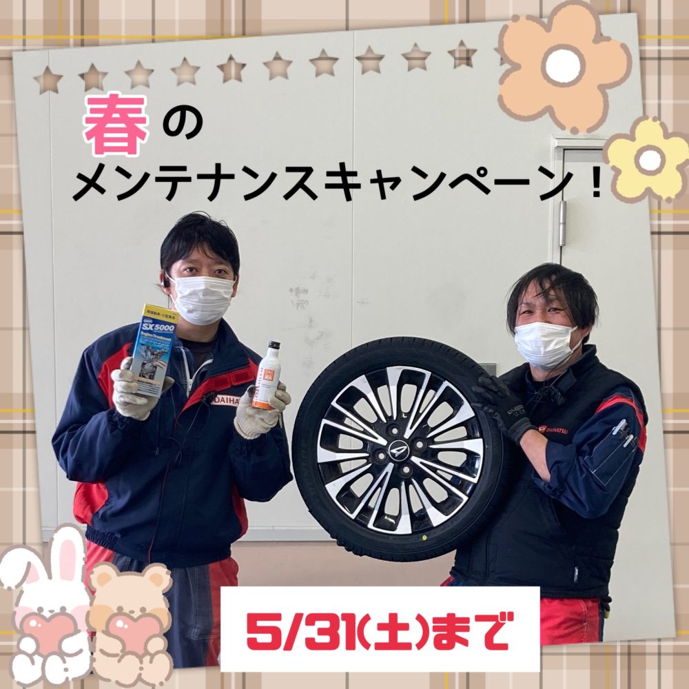 ダイハツでは5月31日(土)まで【春のメンテナンスキャンペーン】を開催してます✨