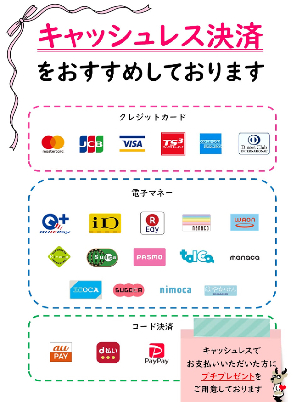 キャッシュレス決済へのご協力をよろしくお願いいたしますm(_ _)m