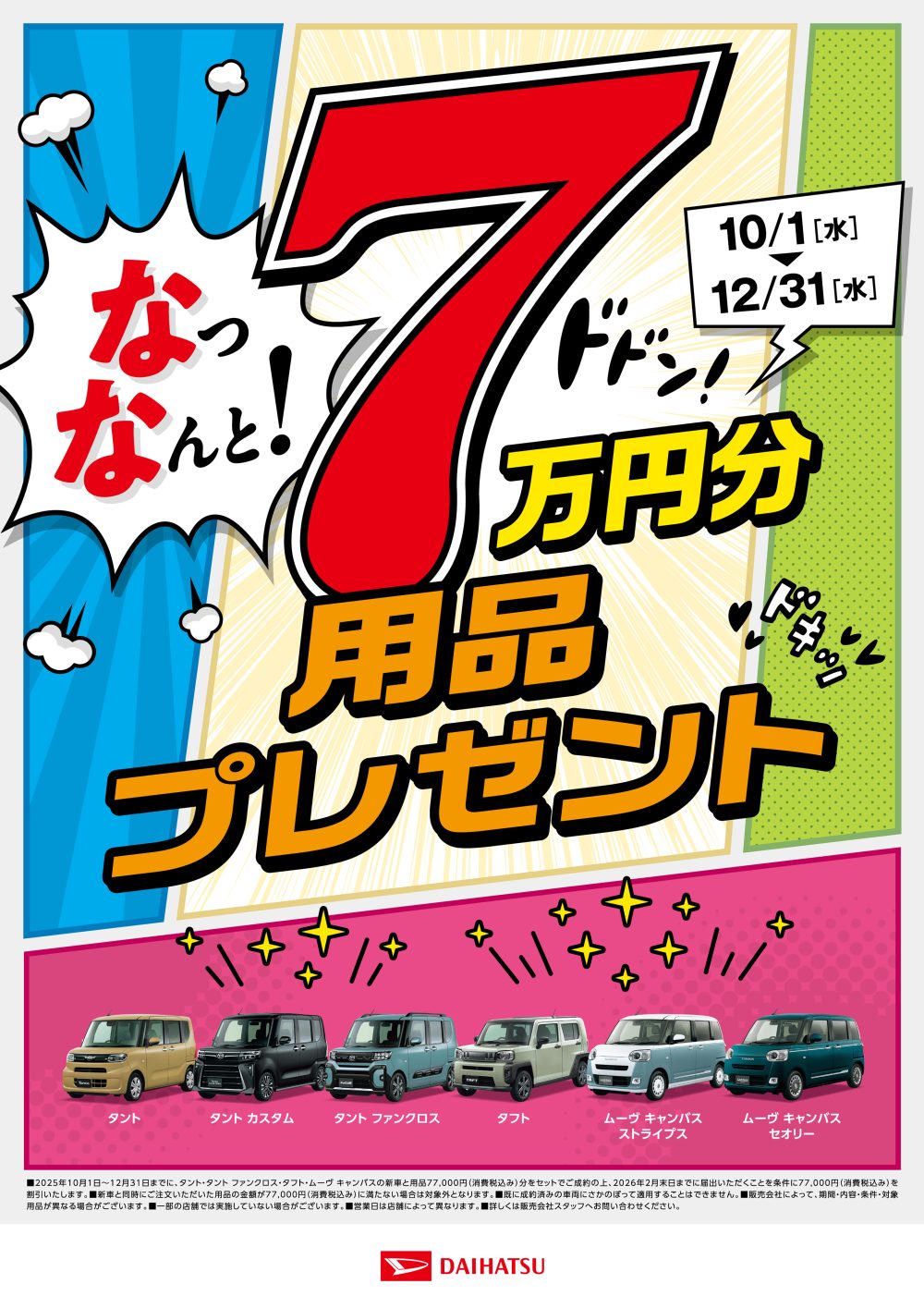 用品7万円プレゼントキャンペーンを開催中☆ミ