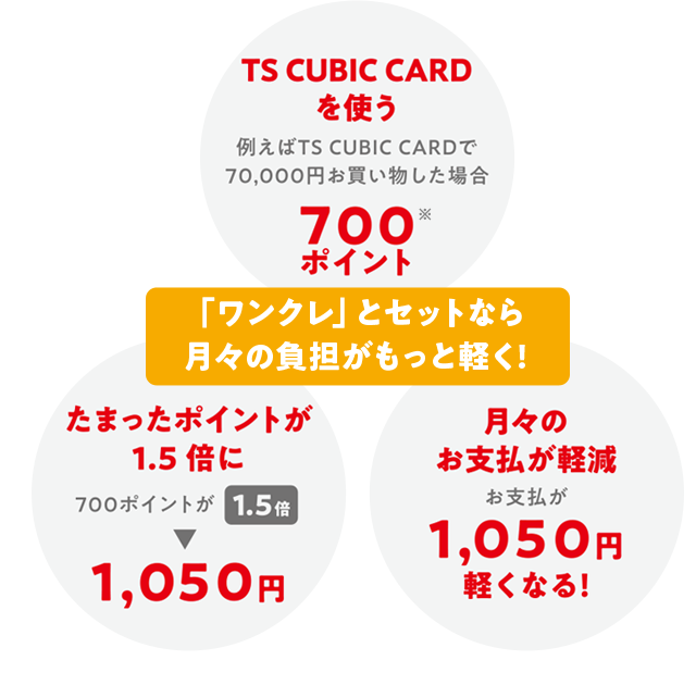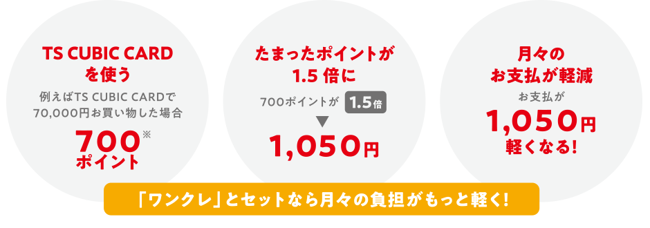 ※一部ポイント付与対象外、もしくは付与率が異なる場合がございます。詳細は、TS CUBIC CARDモールをご覧ください。