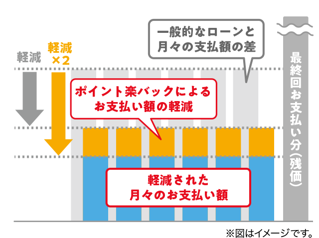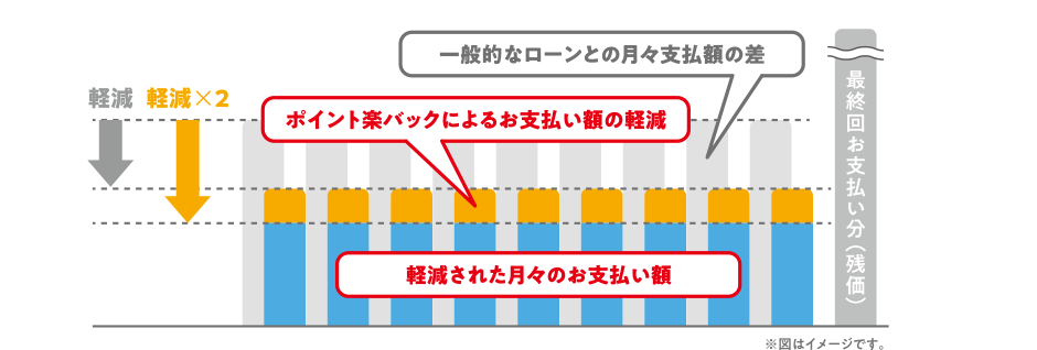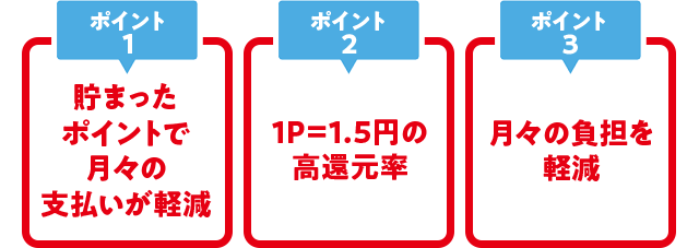 毎月の充当金額は、毎月のお車のクレジット支払い金額が上限となります。 ポイント充当には、ポイント残高が300ポイント以上必要です。300ポイントに満たない場合には翌月以降に繰り越しされます。 |